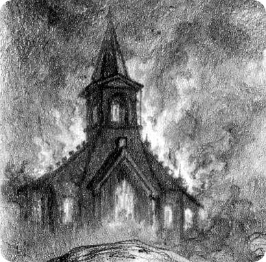 In der Gegend werden kirchliche Orte mit Vandalismus, Drohanrufen und schließlich Brandanschlägen überzogen; an den Tatorten taucht ein Symbol aus zwei Kreisen mit umgedrehtem Kreuz auf.