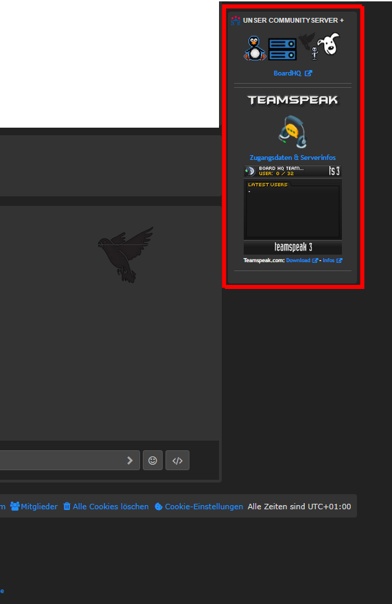 (Bild: Beispiel – Wer ist im Teamspeak ? Statusanzeige im Portal vom Dreifragezeichen Board)
