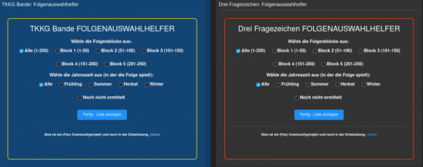 Seit Ende letzten Jahres (2024) haben wir im ??? (Fan)- und im Bandenboard jeweils einen „Folgenauswahlhelfer“. Dieser basiert auf JavaScript, mit dem ich etwas herumexperimentiert habe. Im Grunde wurde eine Liste aller Hörspiele der beiden großen Serien erstellt, und ein… Weiterlesen →